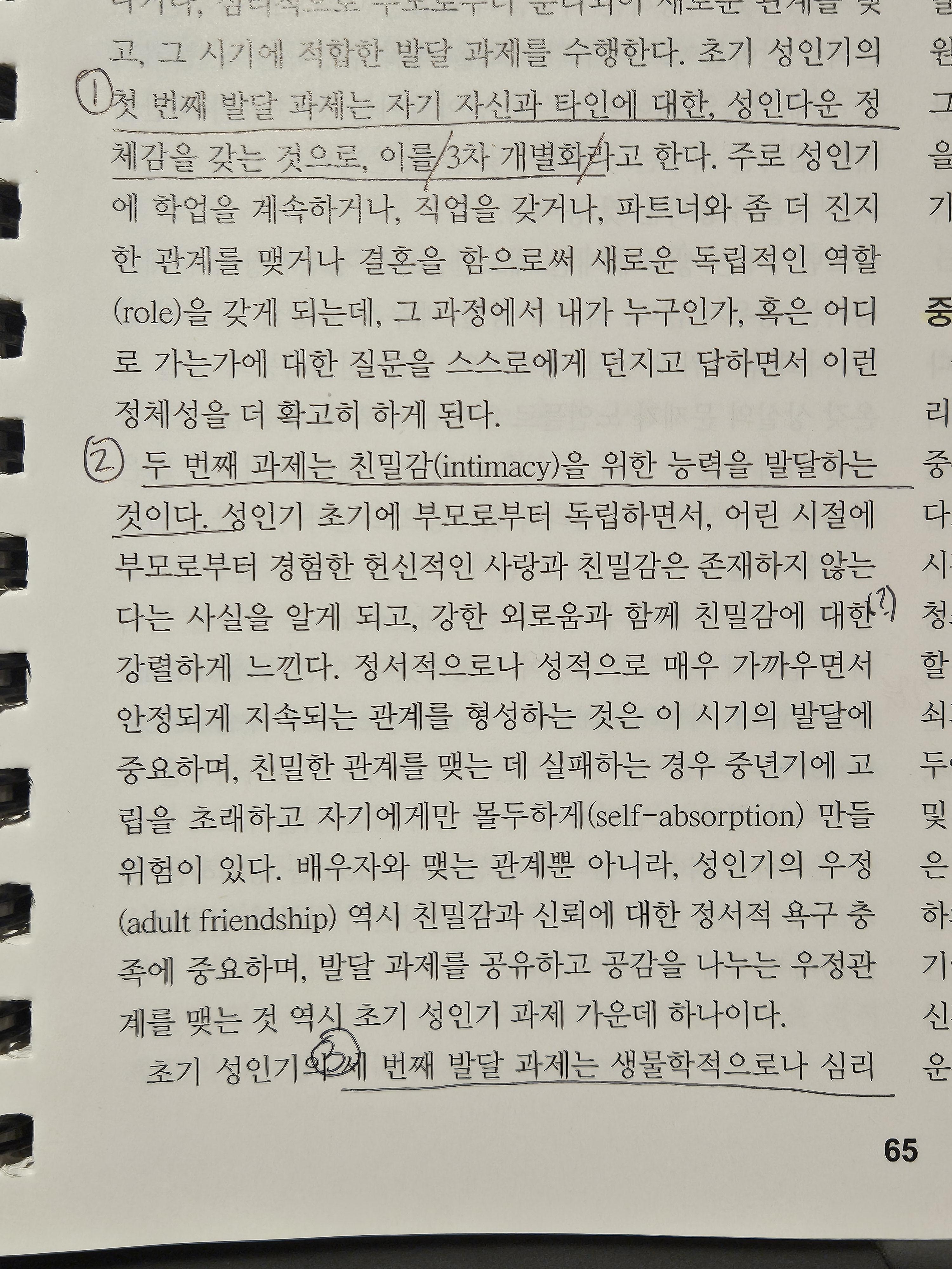 전문의 시험 공부 중 누나 생각나는 구절이라며, ‘초기 성인기의 세 가지 발달과제‘에 대한 교과서 캡쳐본을 보내온 승원이에게 따스한 동질감을 느낀다. 역시 또라이는 또라이를 알아보는가. 다른 인간들도 비슷한 고뇌와 고민를 겪는다는 사실을 알아차리는 것만으로도, 모든 치유와 나아감이 시작된다.