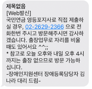 2023년 1월 12일, 신청한 날로부터 6일 뒤, 나는 장애인 업무를 맡아 하는 [국민연금공단]을 통해  전화 한 통을 받았다.